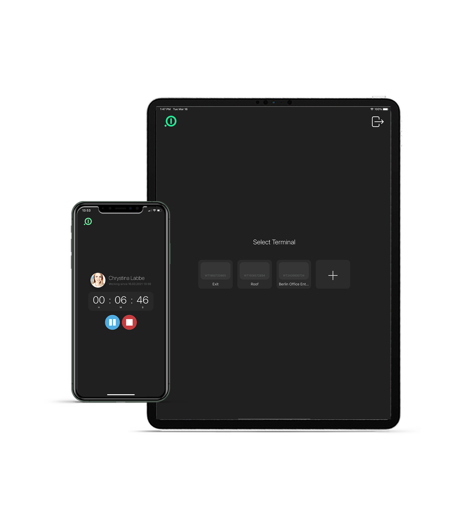 Über den Browser oder die App hat jeder Mitarbeiter Zugriff auf seinen individuellen Account. Mit einem Klick wird die Zeiterfassung gestartet, pausiert und zum Feierabend gestoppt. Alternativ können Zeiteinträge auch nachträglich erstellt werden. Welche Möglichkeiten der Zeiterfassung sie Ihren Mitarbeiter geben möchten, können Sie als Admin selbst festlegen. Dasselbe gilt für die Art der Zeiterfassung. Wir bieten Ihnen neben einer reinen Softwarelösung auch eine Terminal-App für das Ein- und Ausstempeln via Smartphone oder Mitarbeiterausweis an.