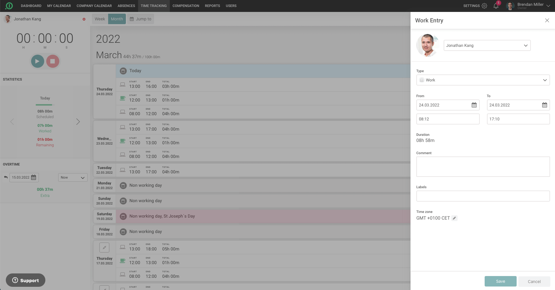 - Über- und Negativstunden lassen sich automatisch kompensieren.